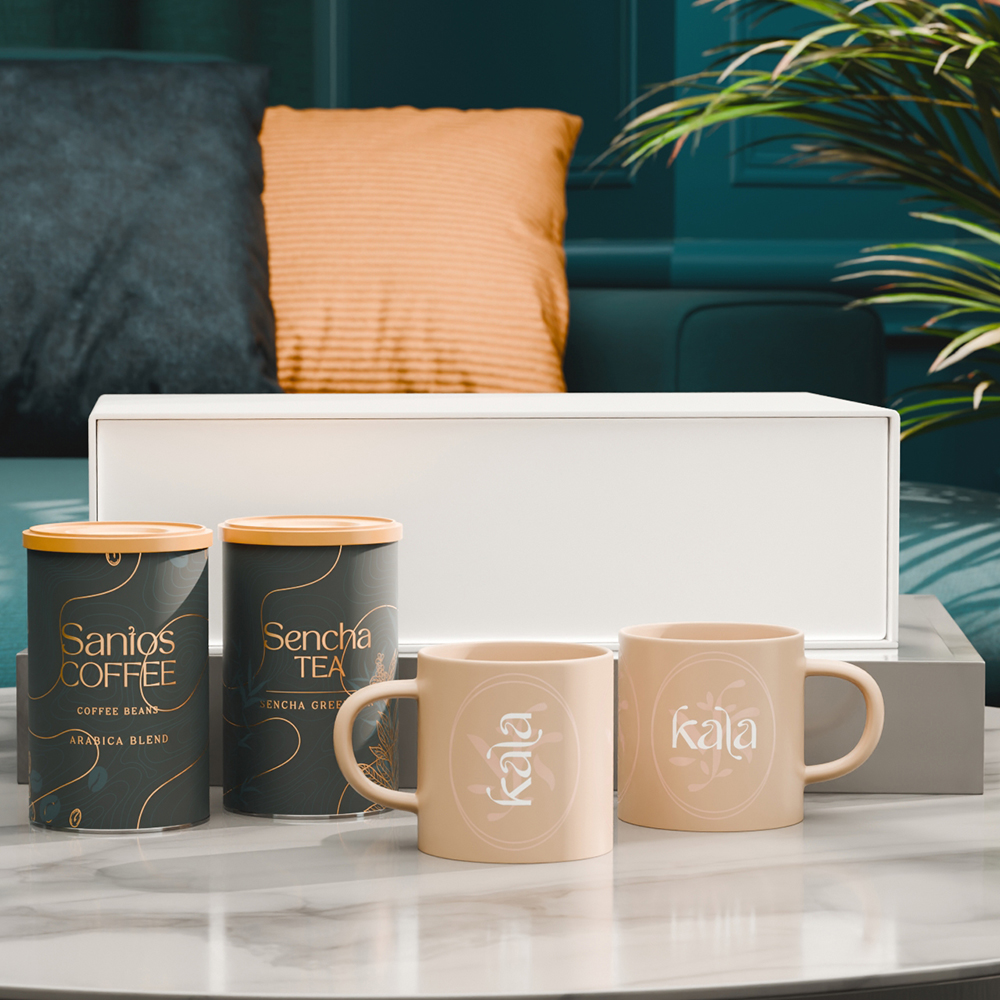 Un delicato duo di due tazze Gaia dai colori naturali ed equilibrati, ideale per sottolineare l’attenzione all’etica e all’ecologia. Il set è completato da un selezionato “Santos Coffee” e da un aromatico “Sencha Tea”, confezionati in eleganti lattine. Il tutto è racchiuso in una confezione esclusiva, bianco neve, con chiusura magnetica.